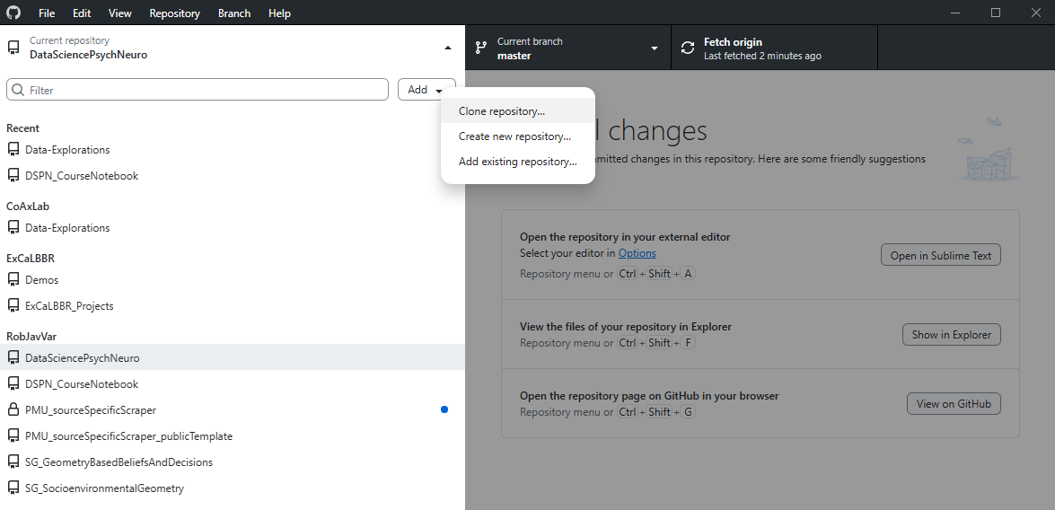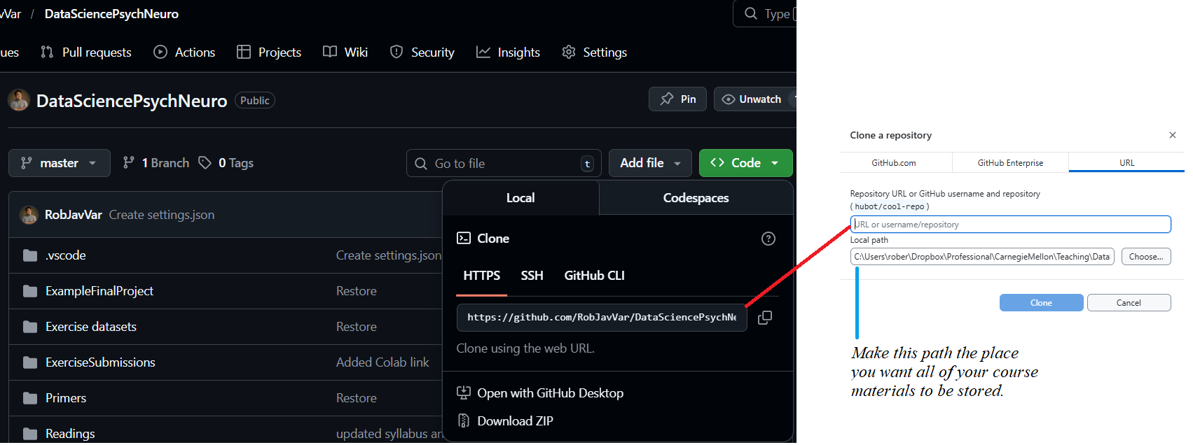 2a. Clone the class GitHub repository locally on your computer using the GitHub Desktop client: