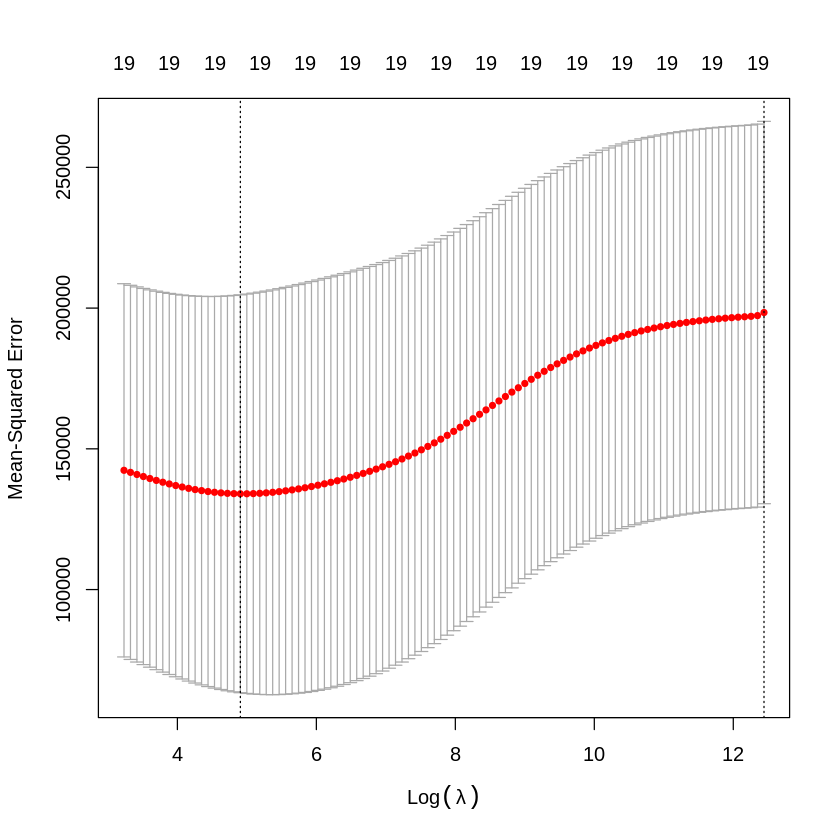cv.out = cv.glmnet(x[train_hyperparameter,], y[train_hyperparameter], alpha=0) #alpha=0=ridge regression