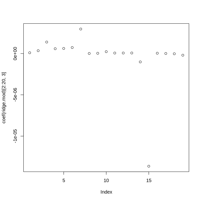 plot(coef(ridge.mod)[,50]) #getting coeff. for that value of lamba, all coeff.